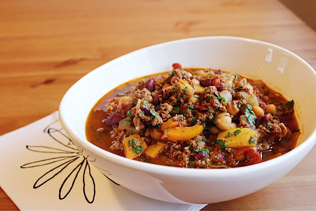 I start with this super simple base recipe and then add in extra veggies: orange and yellow peppers, cremini mushrooms, and some chopped spinach (which I throw in just a few minutes before serving). I always add way more of the spices, maybe almost double what’s called for (I just sort of taste and adjust) - it’s better if the spices simmer for a while.
