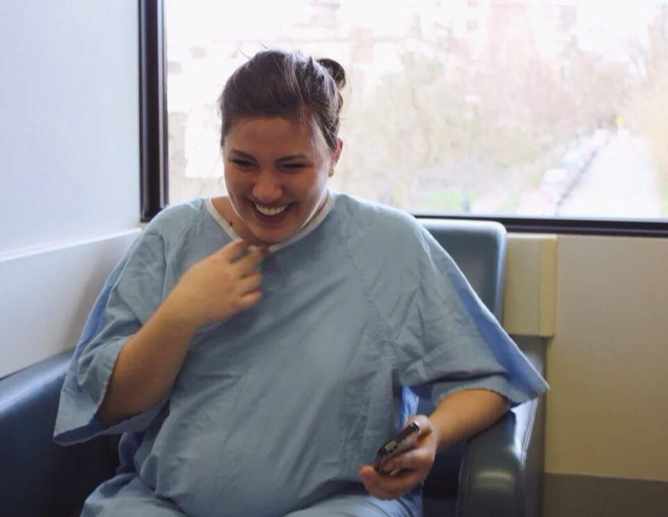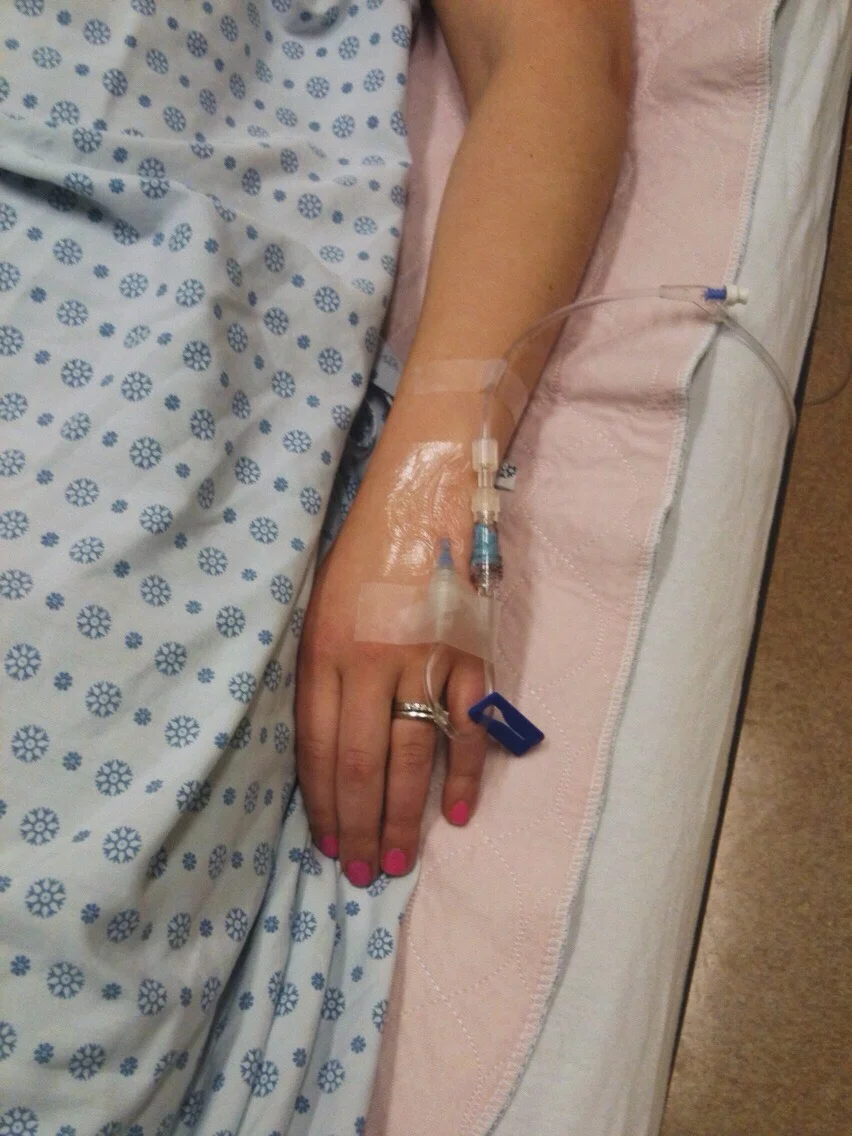The heaving started coming in regular interval waves accompanied by profuse sweating to the point of soaking towels. I think I was nervous of going to the hospital in case I wasted their time, but at this point I said to Zach that if I had one more wave then we’d have to go in. Sure enough, 20min later (on schedule) the next wave hit. So Zach got me dressed - literally putting my clothes on for me - and we headed over to Lions Gate Hospital. I figured I was so weak from not eating for 4 days straight and I was probably dehydrated so I would need an IV to build my fluids back up.